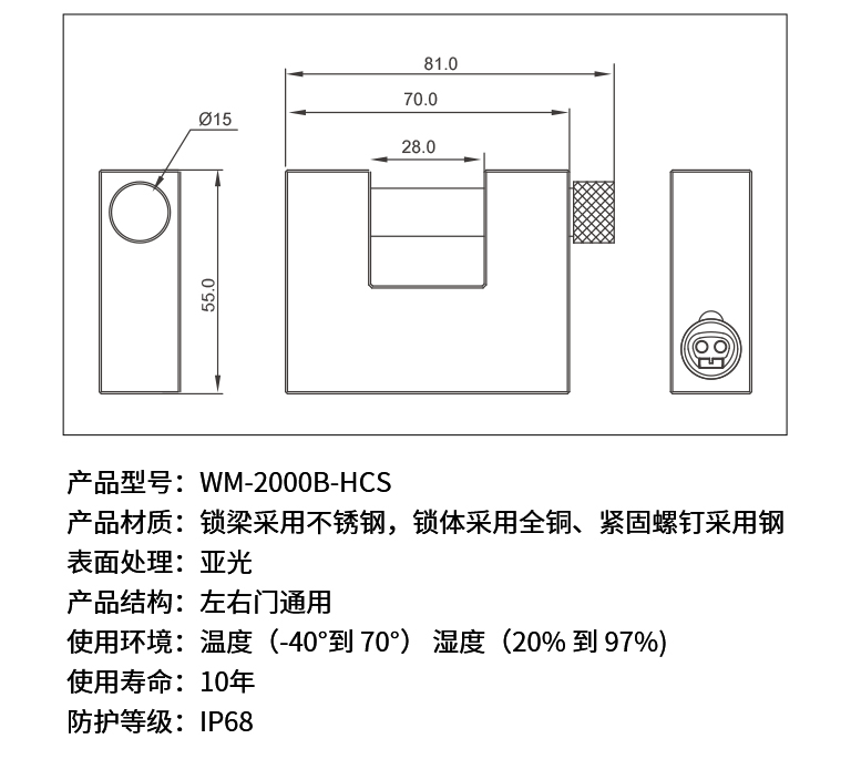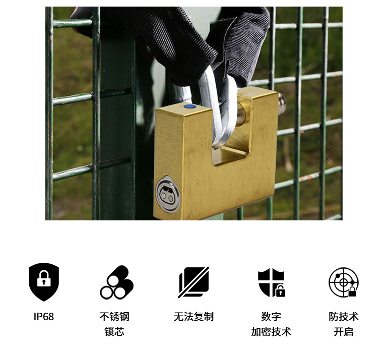 Vanma横插挂锁内嵌智能锁芯,内嵌智能无源电子锁芯由智能钥匙供电,采用严密的数字加密方式,无法技术性开启。具有信息化管理功能的高安防智能锁。采用不锈钢锁梁与全铜锁体,强度大,适用恶劣环境,防钻、防锯、防敲打,耐腐蚀。适合宽度较大的锁具。无法技术性开启,且便于管理。